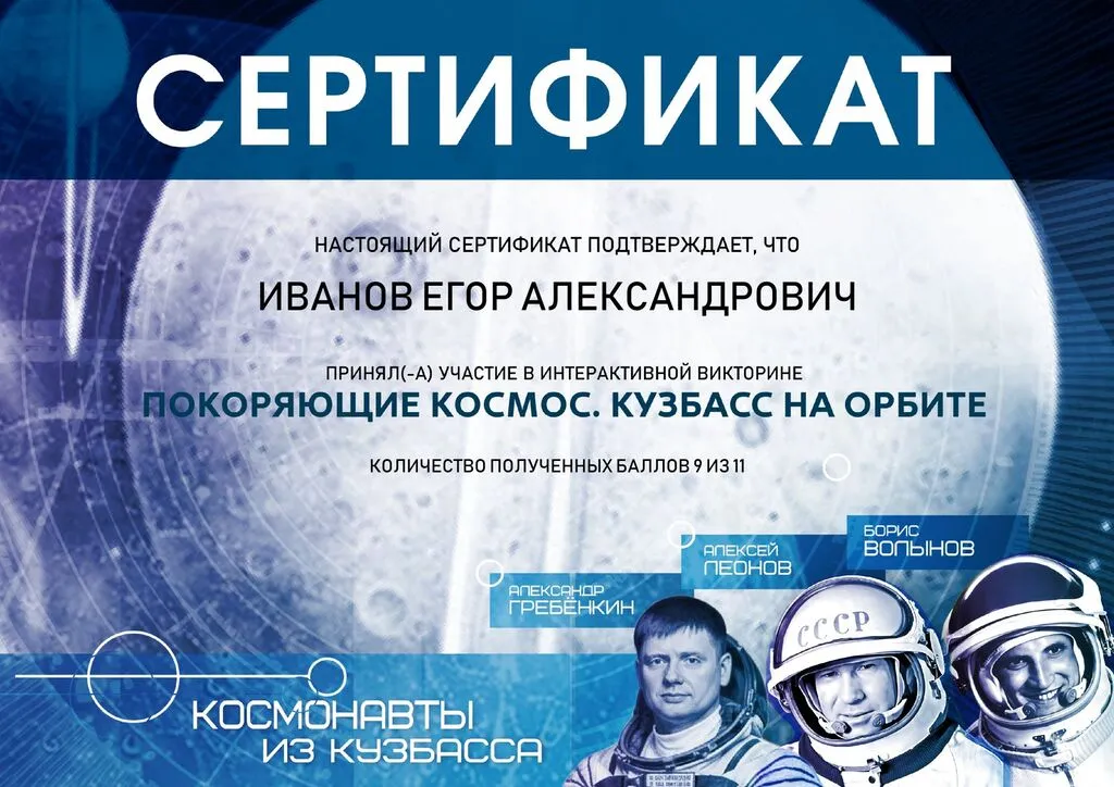 В акции приняло участие более 100 студентов совместно с преподавателем Терещенко О.В., которые получили сертификаты за участие в интерактивной викторине «Покоряющие Космос. Кузбасс на орбите».